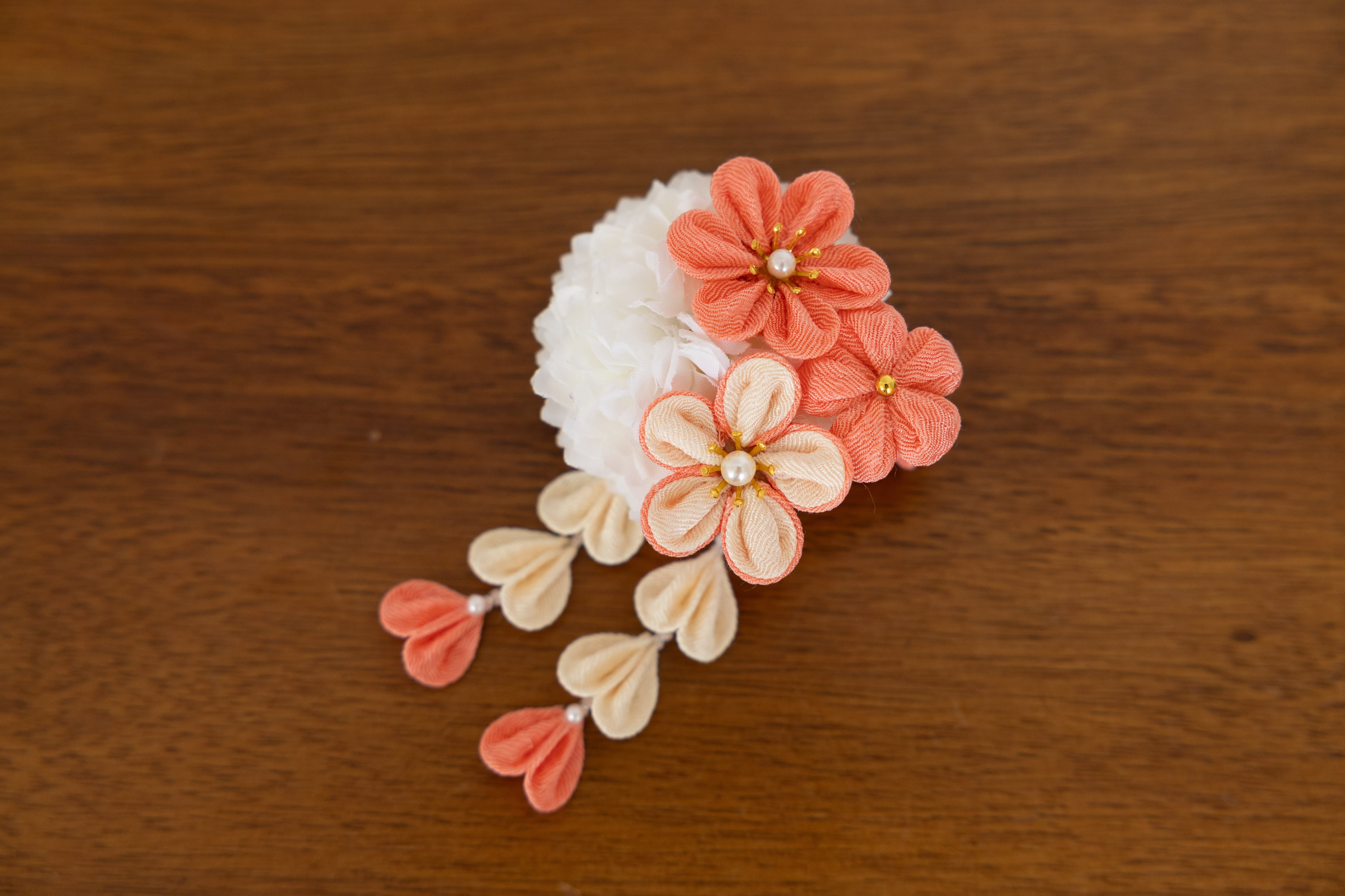 ※つまみ細工はとても繊細で水濡れや圧迫は、縮み、型崩れの原因になります。